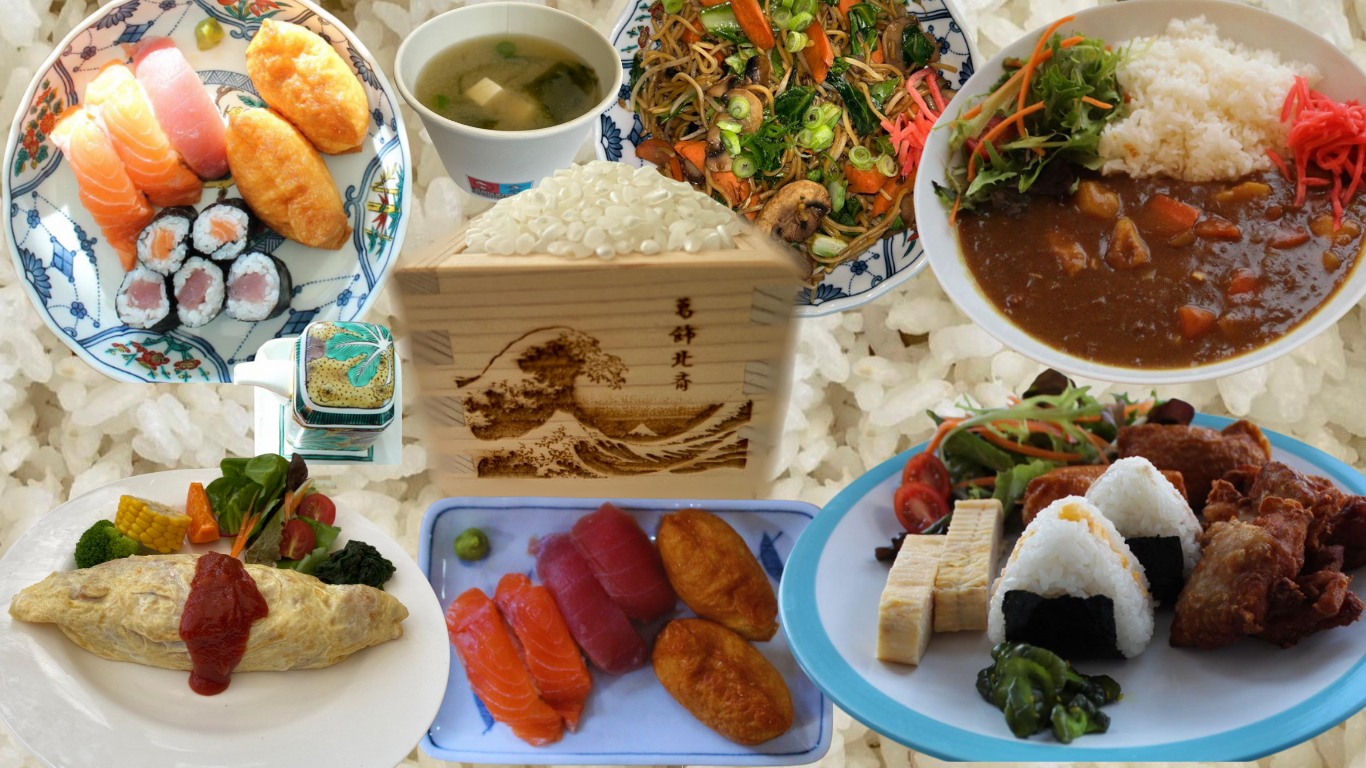 A traditional bento box usually consists of rice (sometimes noodles) and meat, fish, and pickled and cooked vegetables on the side, making it a nutritionally balanced meal.